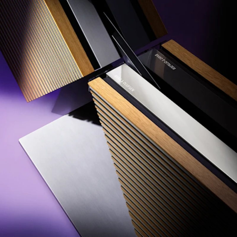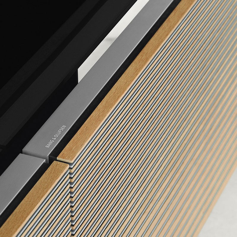 Luxury woods. Textured fabrics. Aluminium detailing. All brought together to chime with your screen. From light oak to grey mélange, choose what resonates with you — and let your beautifully covered speakers reveal spellbinding sound.